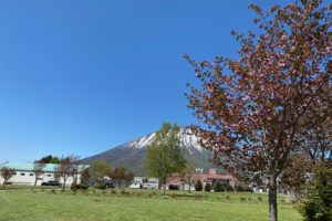 - 道の駅真狩フラワーセンターの裏に 👀桜が咲いていました♬ 羊蹄山をバックに👣 もっと近づいて 今日はすっきりと晴れ渡って羊蹄山がくっきりと見えます 少しの間~ 癒しの時間を ...